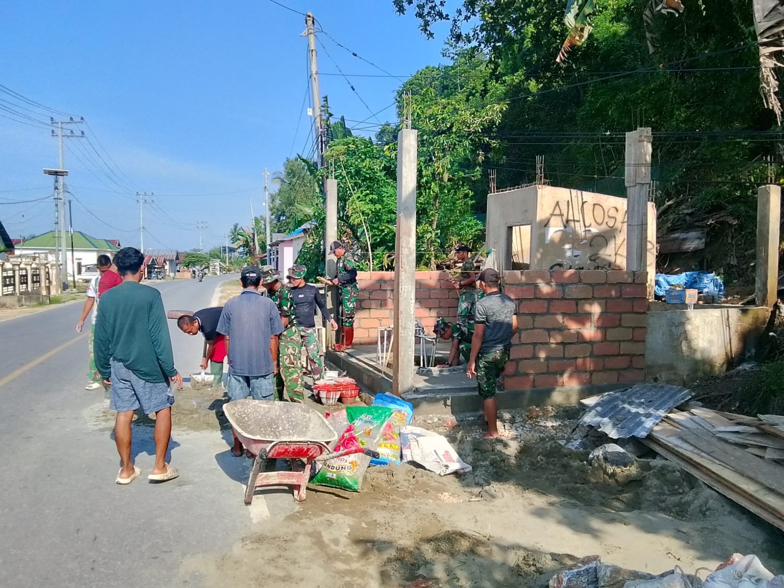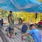 Personel Satgas bersama warga setempat melaksanakan pembangunan fasilitas MCK sebagai bagian dari sasaran fisik yang menyentuh kebutuhan dasar masyarakat. Proses pengerjaan dilakukan secara gotong royong, mulai dari pengadukan semen hingga pemasangan batako.