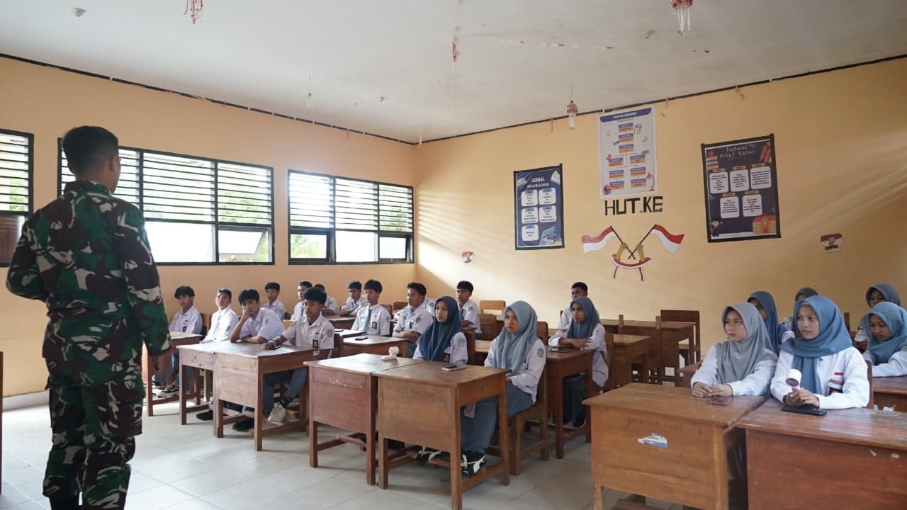 Hal tersebut terlihat saat personel Satgas memberikan edukasi wawasan kebangsaan kepada siswa-siswi SMA 8 Nambo di Kecamatan Nambo, Kota Kendari, Selasa (10/3).