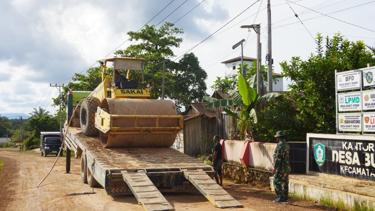 Alat berat tersebut digunakan untuk memadatkan jalan yang menjadi akses menuju area perkebunan masyarakat. Pengerasan jalan ini merupakan salah satu sasaran fisik dalam program TMMD yang dilaksanakan di wilayah Kecamatan Telaga Antang, Kabupaten Kotawaringin Timur.