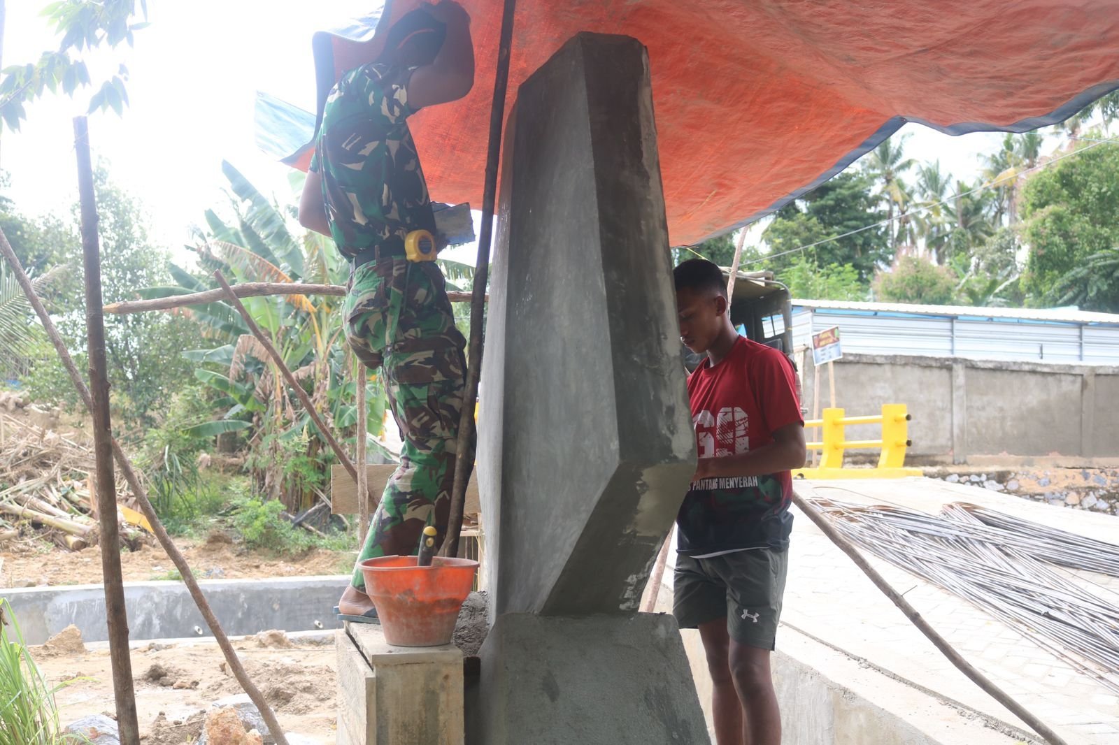 Hal ini diwujudkan melalui pembangunan tugu prasasti TMMD yang saat ini sedang dikerjakan oleh personel Satgas di Kota Kendari.