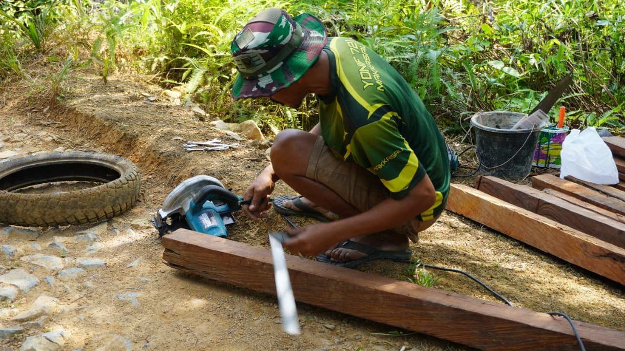 Warga Desa Tri Buana Ikut Turut Bantu Pengerjaan Jembatan TMMD ke-127