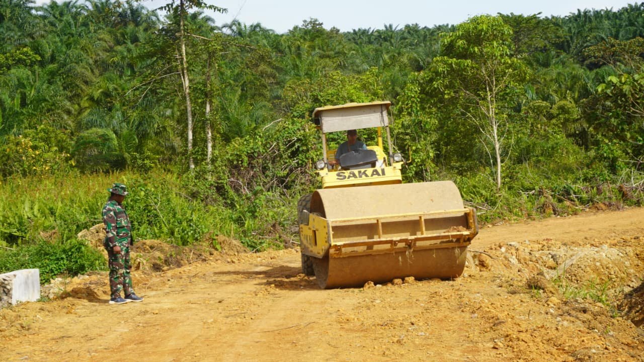 Kotawaringin Timur – Proses pengerasan jalan yang dilakukan oleh Satgas TMMD ke-127 di Desa Tri Buana, Kecamatan Telaga Antang, Kabupaten Kotawaringin Timur menarik perhatian masyarakat setempat, Senin (09/03/2026).