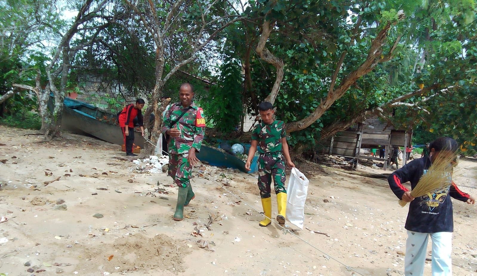 Kegiatan ini dipimpin langsung oleh Serda Reba selaku Babinsa Kampung Sisir yang mengoordinasikan personel dan masyarakat dalam membersihkan area pesisir dari sampah.